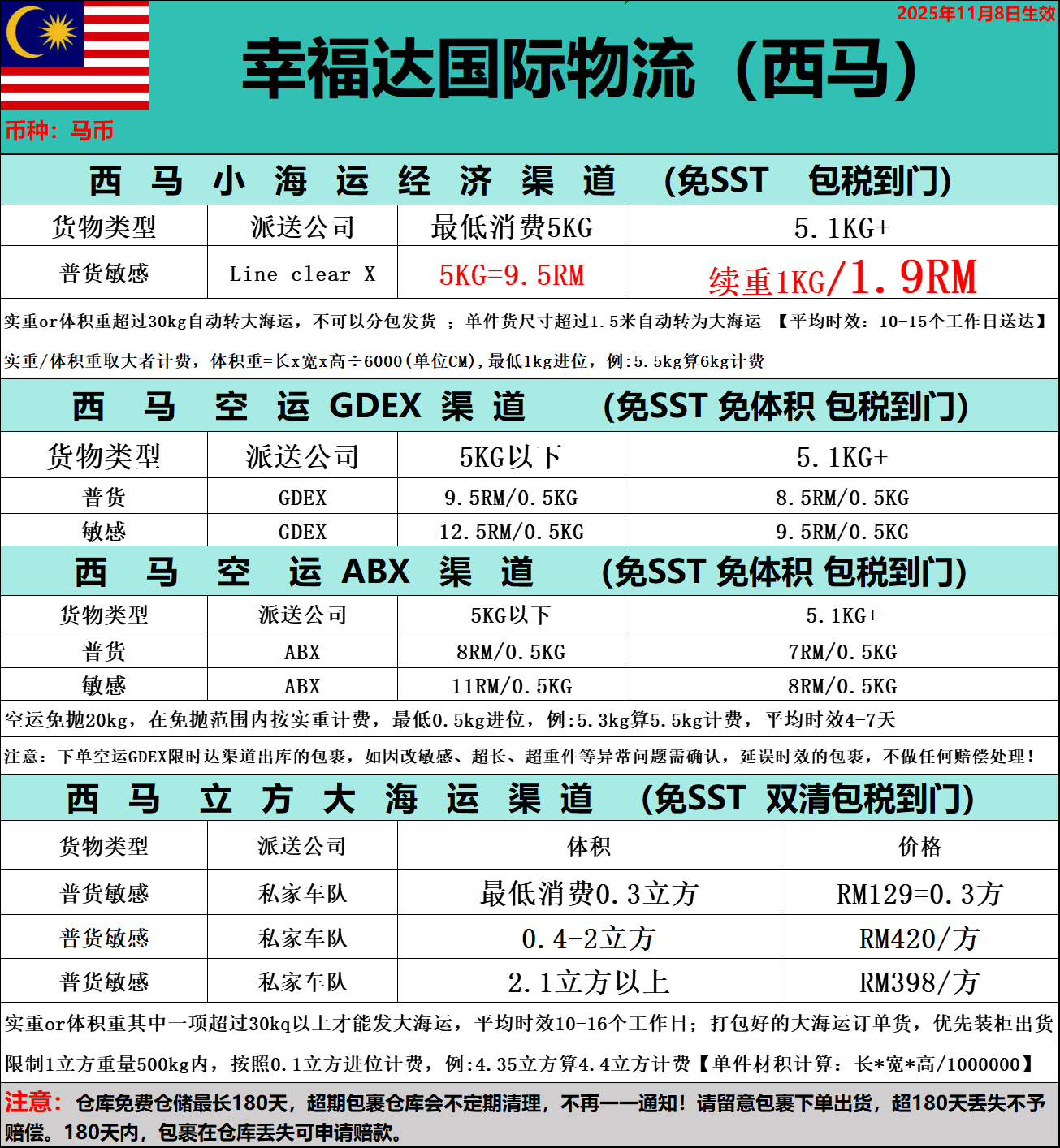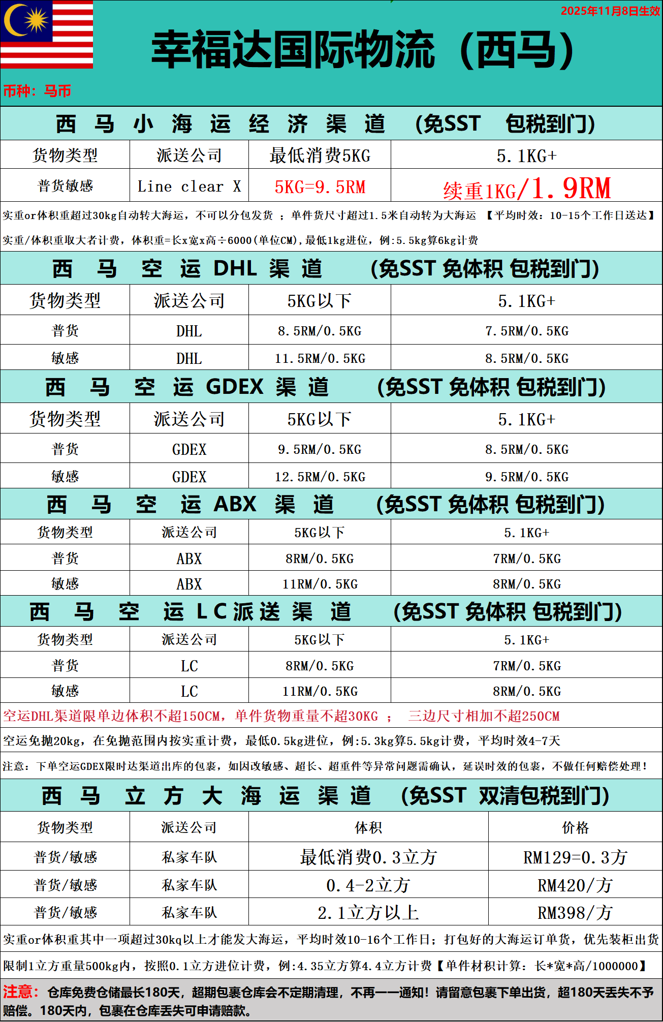 * 默认体积重与实重比较,取较重者计算运费,免抛/半抛优惠请参考报价说明。